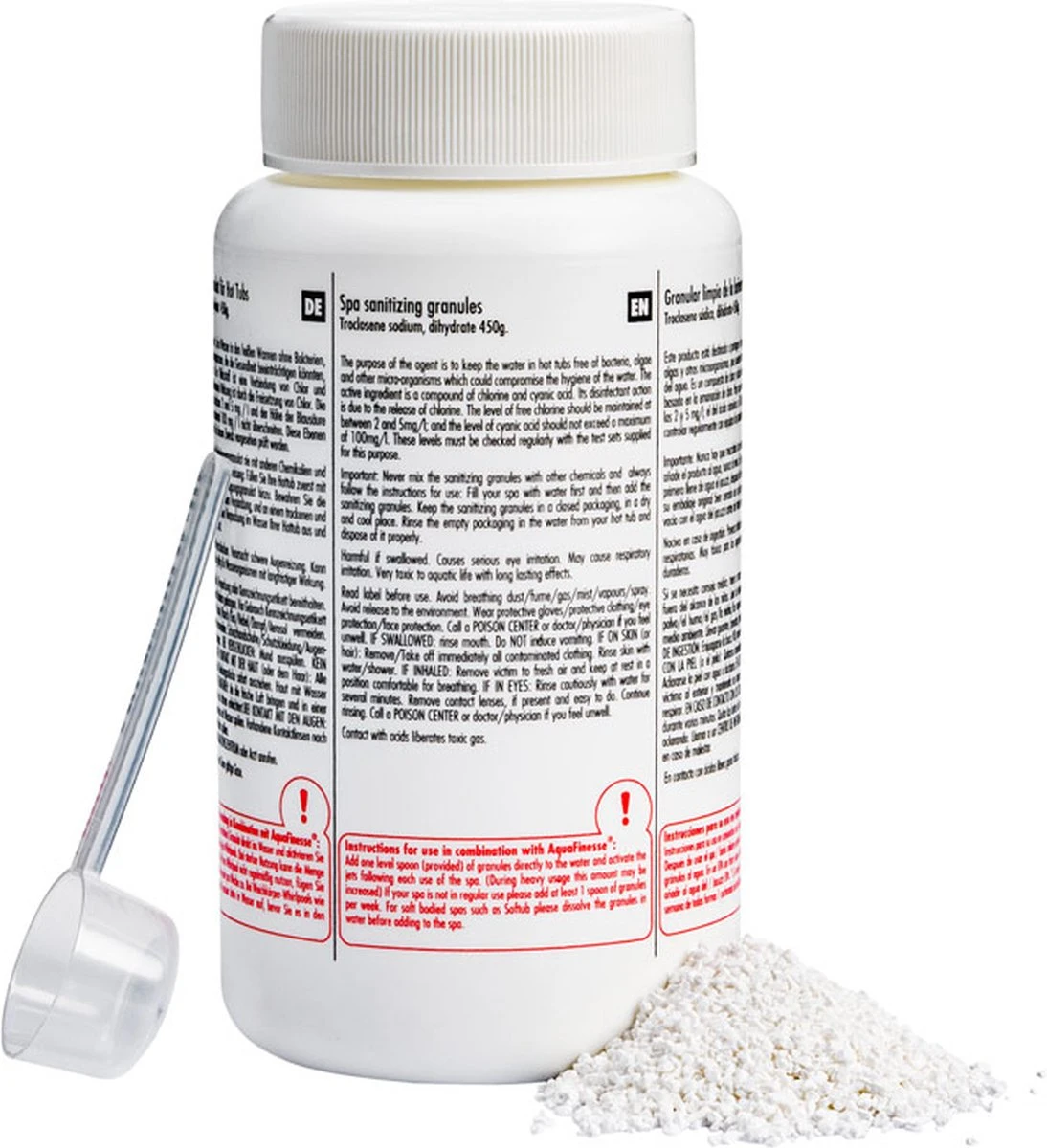 De gepatenteerde formule van AquaFinesse werkt volgens een baanbrekende technologie waardoor uw spawater zuiver, kristal helder en reukloos blijft.Uhoeft AquaFinesse slechts één keer per week aan uw spawater toe te voegen! Bovendien maakt AquaFi nesse het water van uw spa/hot tub ook zachter en het verwijdert calcium en kalkafzetting in deleidingen.