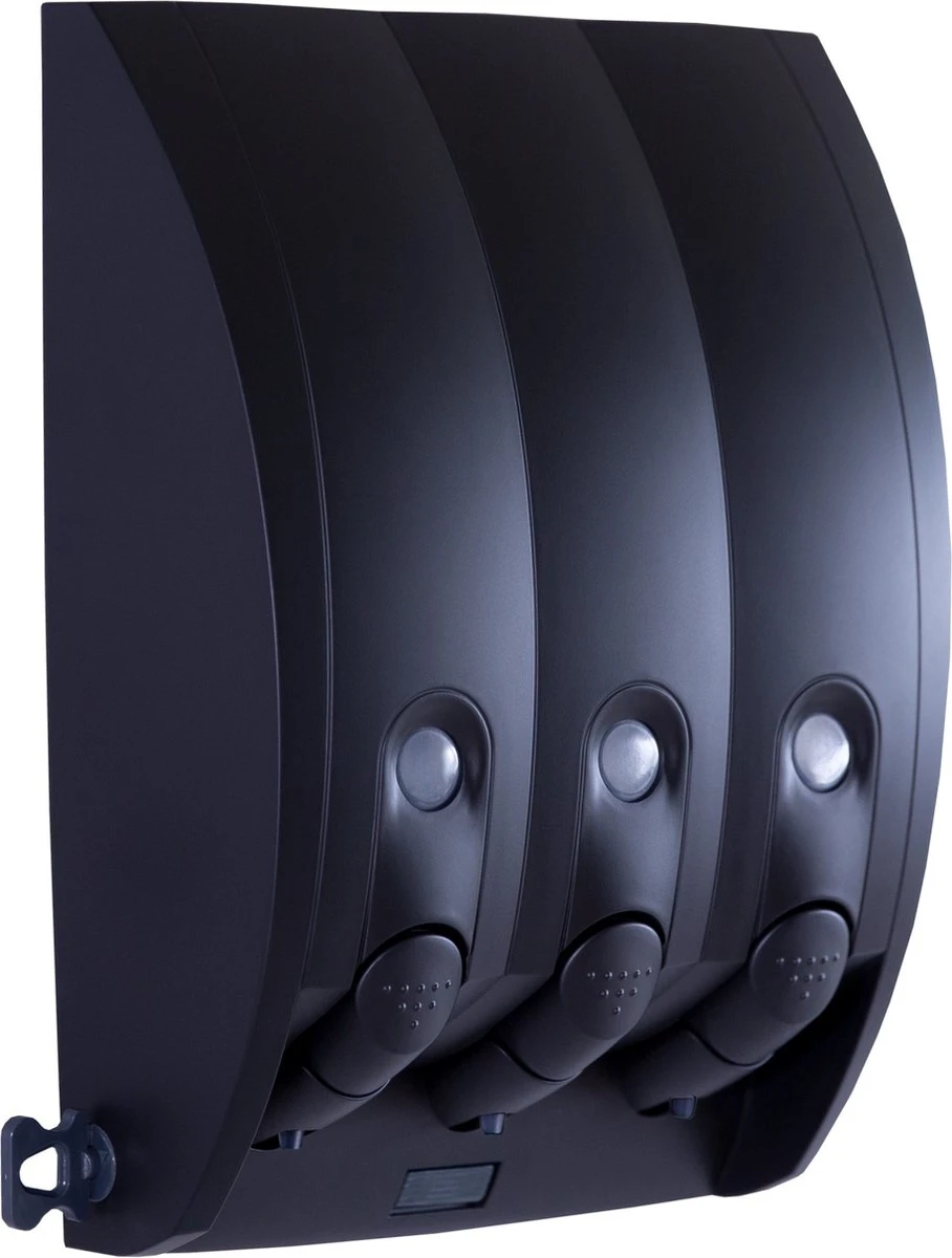 Deze zeepdispenser met 3 kamers / reservoirs zorgt voor een opgeruimde badkamer. Degelijk, modern en gemaakt van kunststof. Een genot om in je badkamer te hebben.