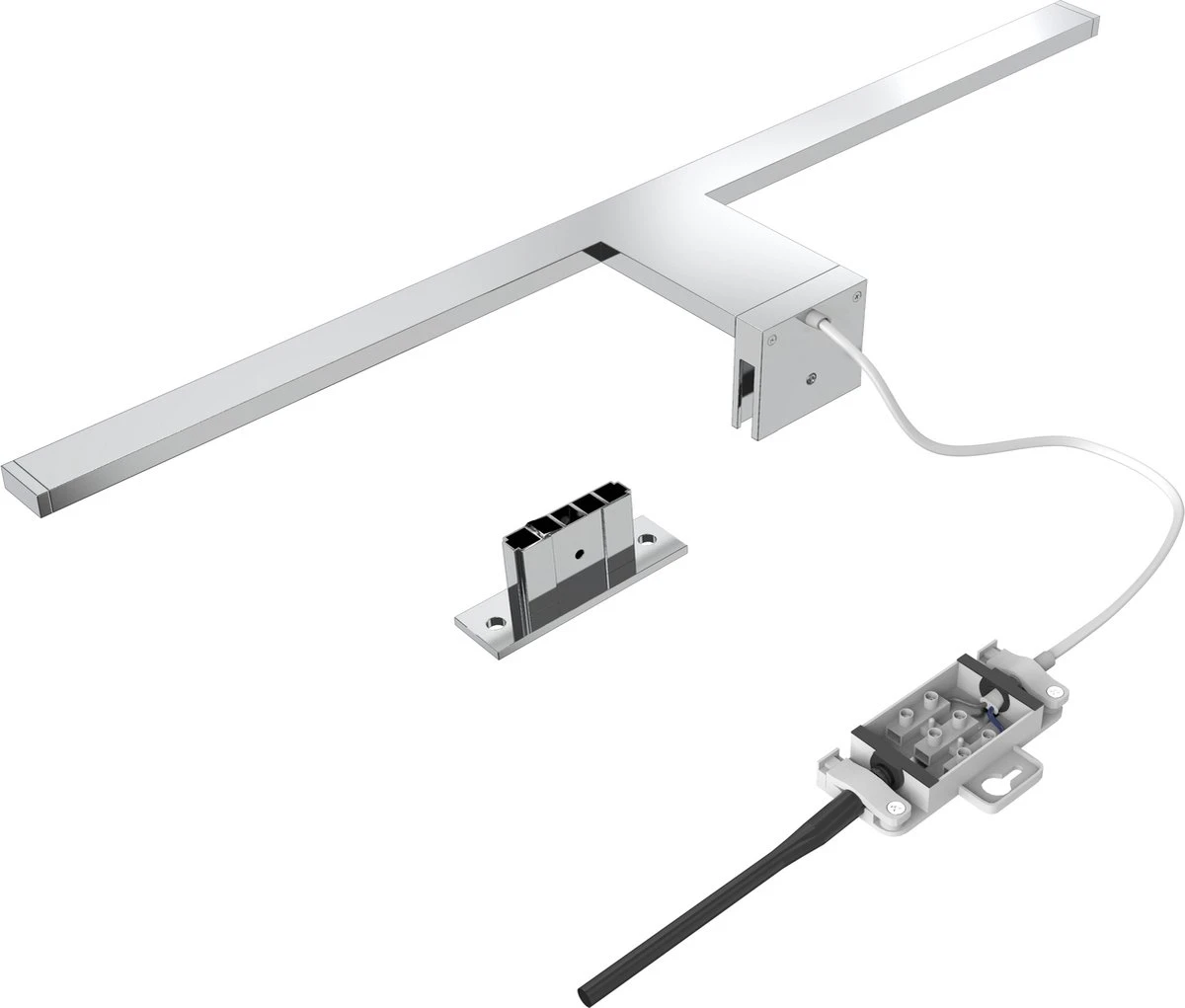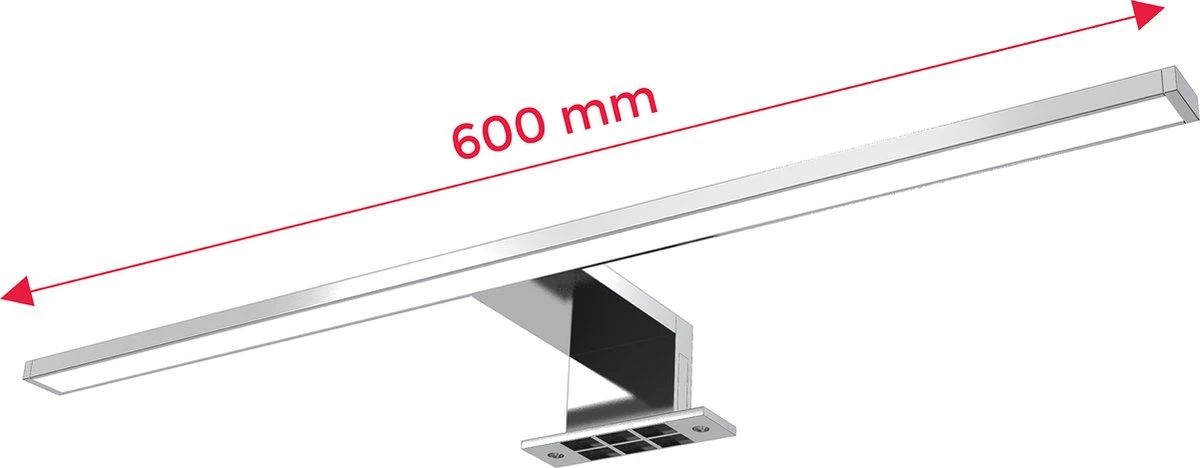 Dankzij het eenvoudige ontwerp en de beschermingsklasse IP44 is deze moderne LED-spiegelarmatuur geschikt als elegante badkamer- en kastarmatuur. De spiegelarmatuur heeft een vaste 8W LED-module. De armatuur kan worden geschroefd of geklemd. De klem is geschikt voor spiegels met een diepte van ca. 5 mm. Wandmontage is niet mogelijk. De armatuur zelf maakt indruk met afmetingen van 600x103x36mm (LxBxH).