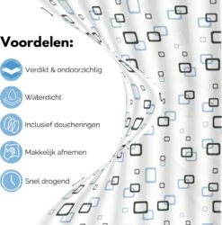 VAIVE Douchegordijn 180×200 – Anti Schimmel – Douchegordijnen
