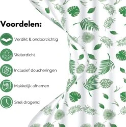 VAIVE Douchegordijn Groen 180×200 – Anti Schimmel – Douchegordijnen – Ringen
