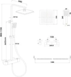 Doucheset Zwart – Met Regendouche 30cm – En Thermostaatkraan