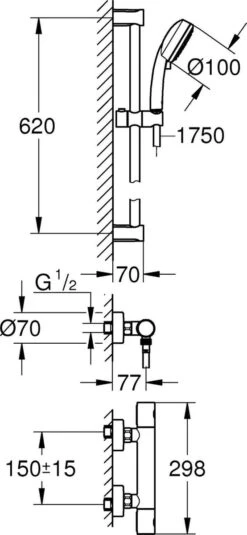 GROHE Grohtherm 1000 Thermostatische Douchekraan – 12 Cm – Chroom – 34153004