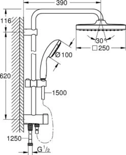 GROHE QuickFix Vitalio Start 250 Regendouche – □ 25 Cm – Vierkant – Zonder Kraan – Chroom
