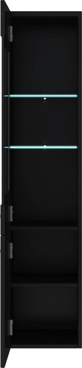 De deuren van de kast kunnen zowel links als rechtsdraaiend gemonteerd worden. De kast is uitgevoerd in zwart met hoogglans frontjes.
