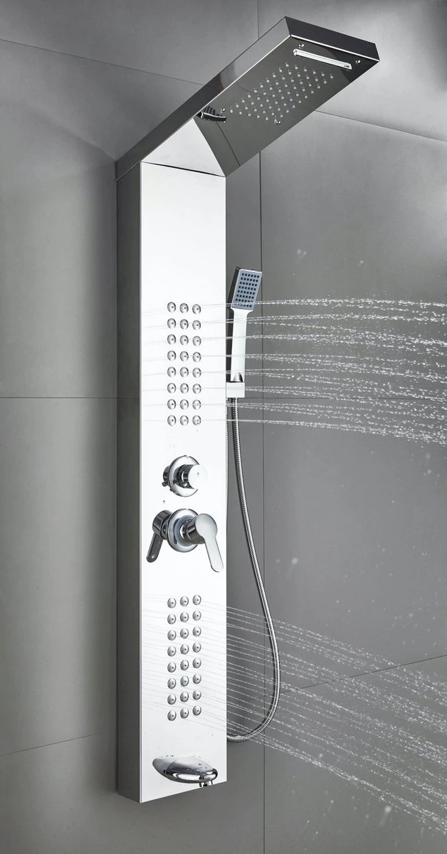 Het douchepaneel heeft vier verschillende waterstanden. Dit zijn de volgende standen: Water uit de hoofddouche, water uit de waterval functie, water uit de handdouche en water uit de twee massage units. Deze vier standen zijn met één knop te regelen, zodoende zijn maximaal twee standen tegelijkertijd te gebruiken.