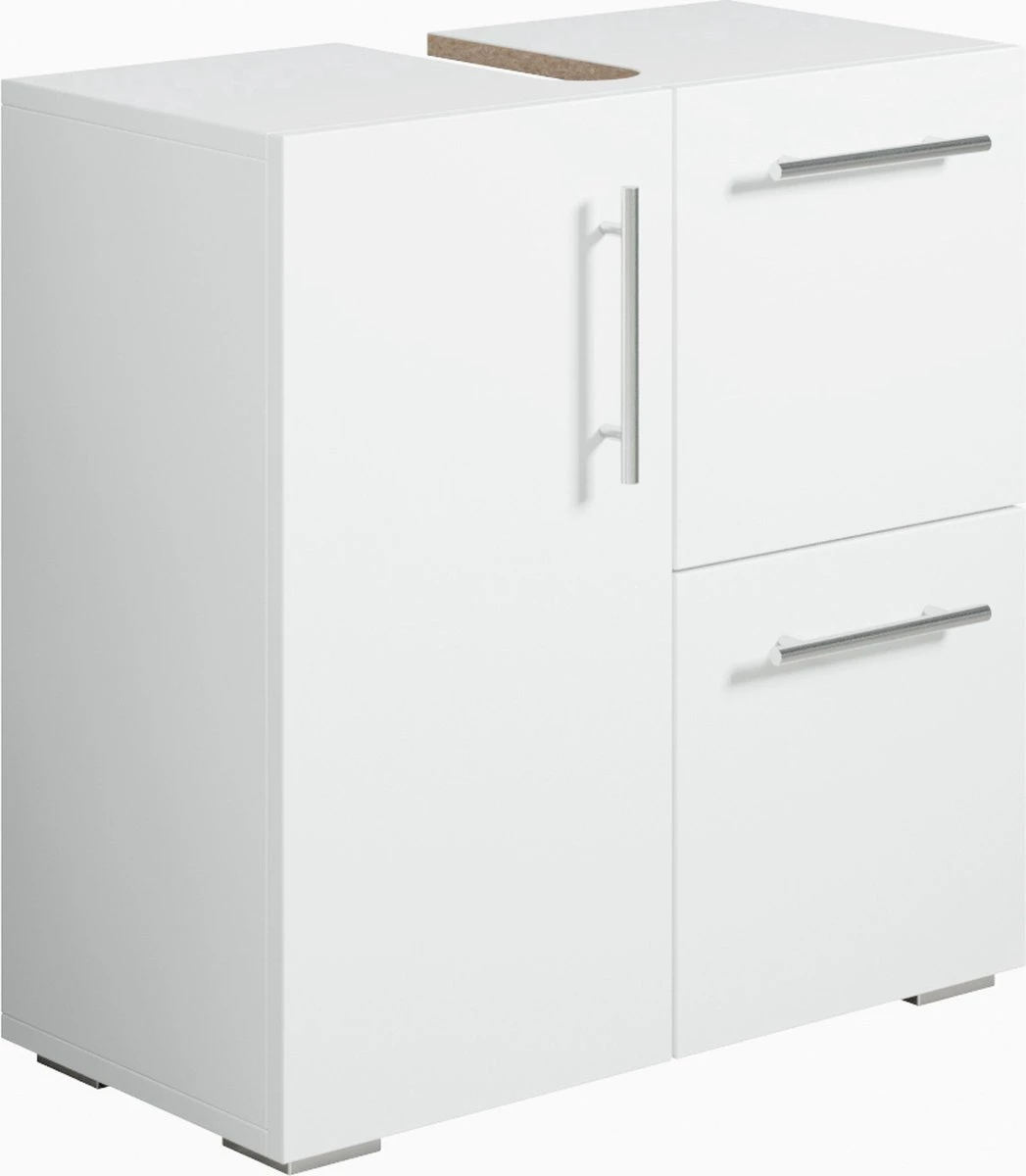 Wastafelkast Mars is een badkamerkast voor onder een hangende wastafel. Deze wastafelkast is bedoeld om iedere badkamer van extra bergruimte te voorzien en een moderne en luxe uitstraling te geven. De wastafelkast is gemaakt van hoge kwaliteit spaanplaat en vanwege zijn strakke afwerking ook makkelijk schoon te maken.