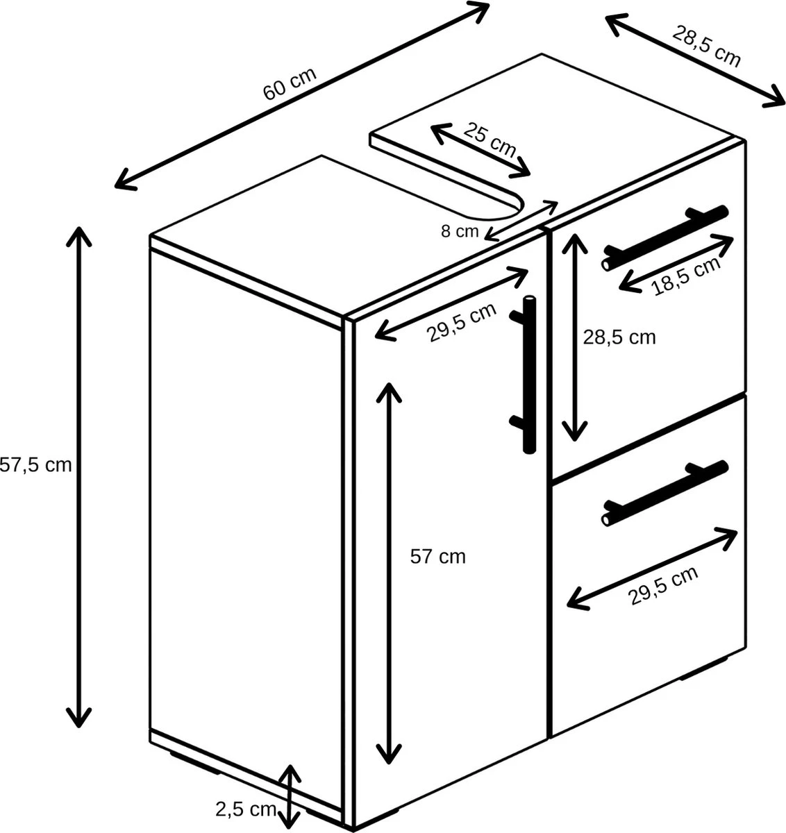 – Wastafelkast: 60 x 30 x 60cm