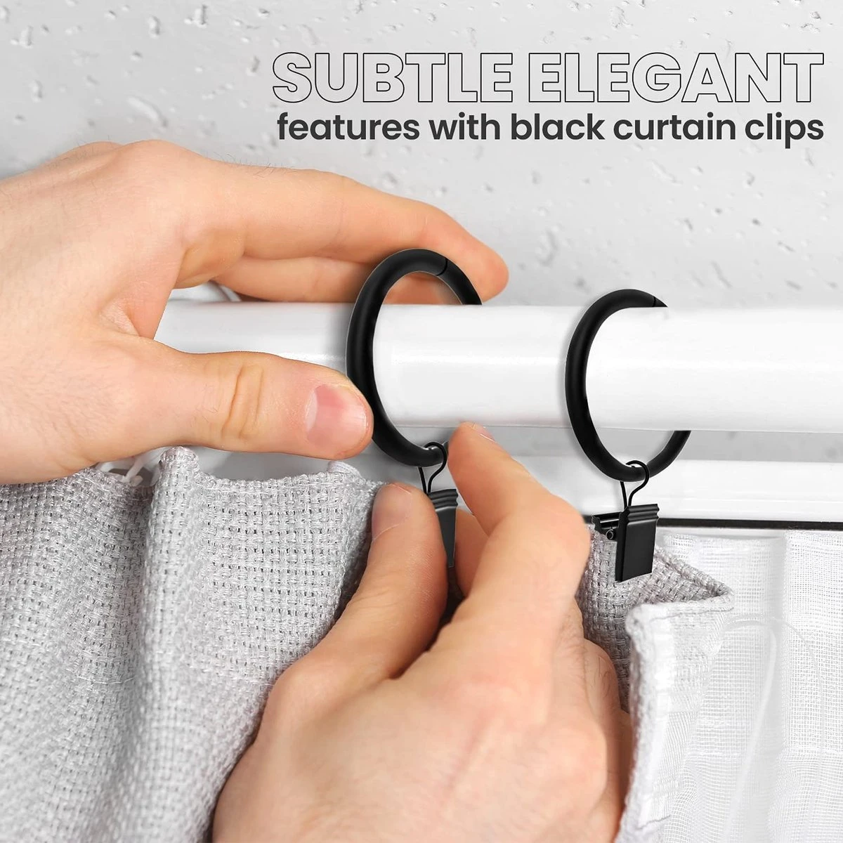 • Deze gordijnclips met ringen zijn gemaakt van 2x hoogwaardig staal met een matzwarte afwerking om uw gordijnen een vleugje verfijning te geven. Voorzien van sterke spanklem om zware gordijnen te ondersteunen.