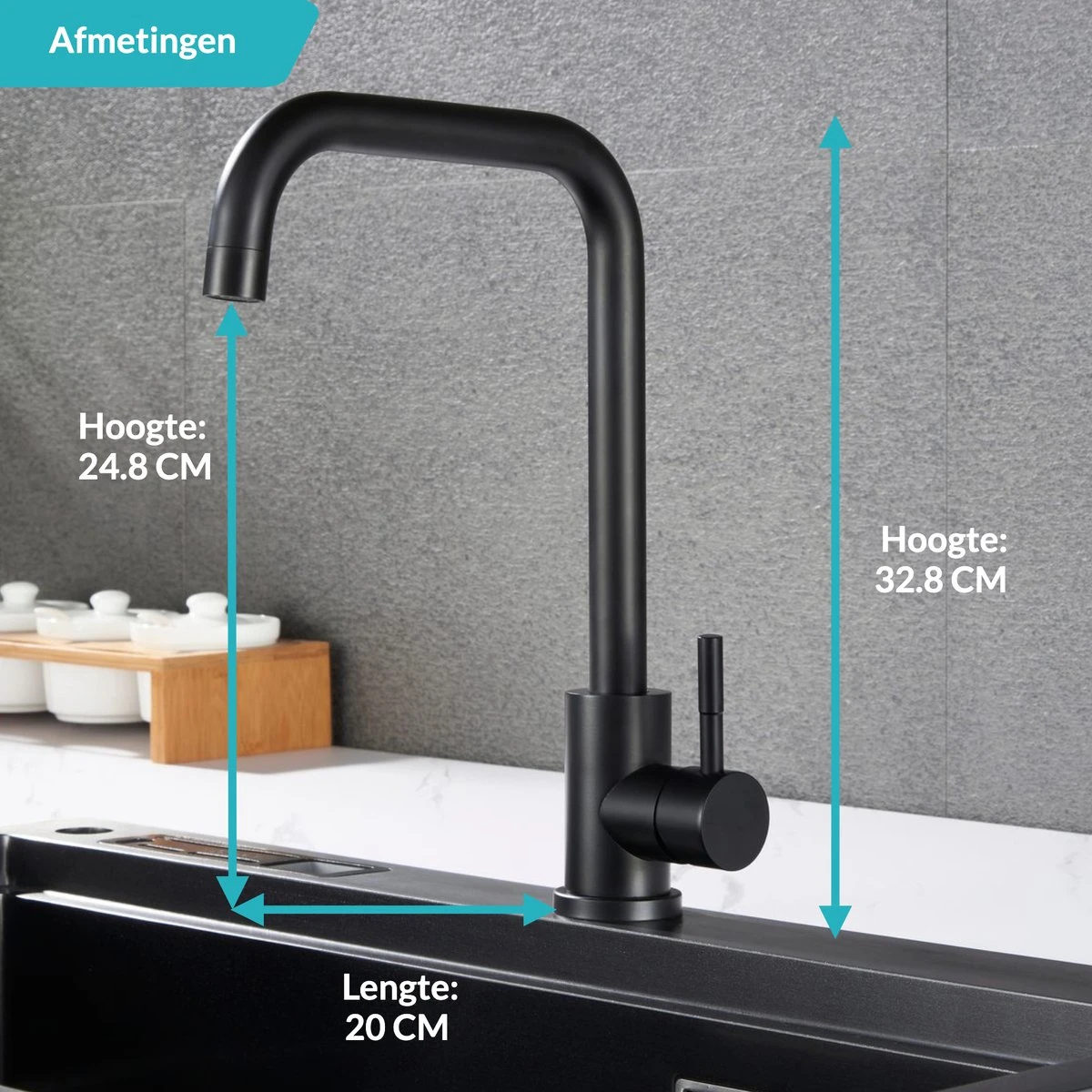Op zoek naar een moderne kraan met alles erop en eraan, zonder honderden euro’s af hoeven te staan? Deze matte zwarte kraan levert design en kwaliteit voor een eerlijke prijs en geeft jouw keuken of badkamer net dat extra beetje stijl!
