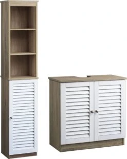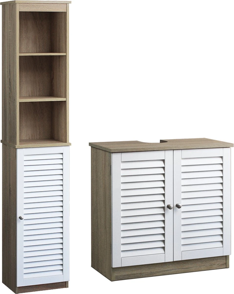 De ruime hoge badkamerkast en onderkast bieden ruimte voor jouw handdoeken, verzorgingsproducten en andere badkamerbenodigdheden. De kast is snel en eenvoudig in elkaar te zetten. Dankzij de Sipohn buisuitsparing past het badmeubel onder elke standaard wastafel in jouw badkamer.