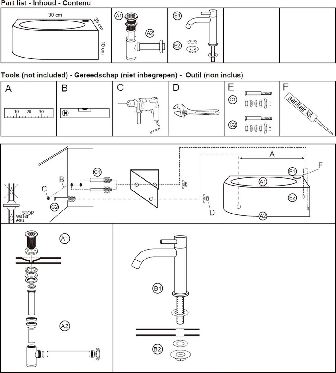 | Elementen meegeleverd | Kraan / Sifon |