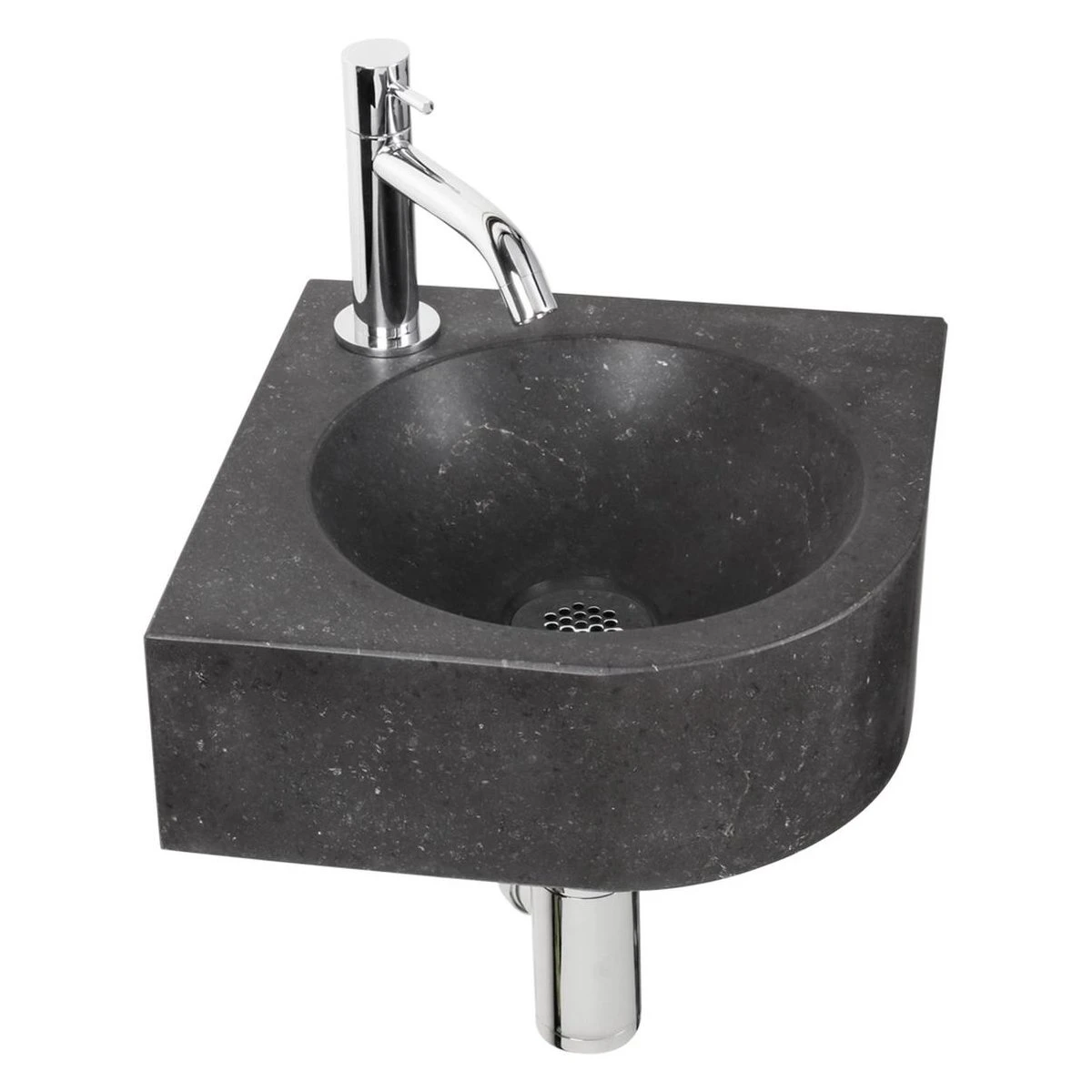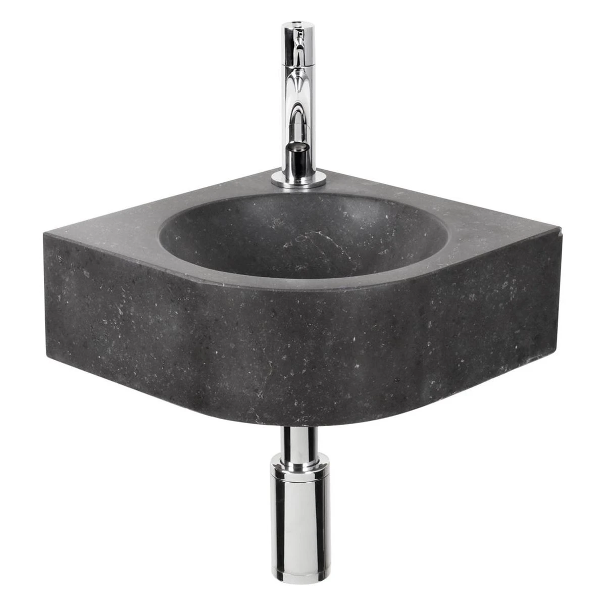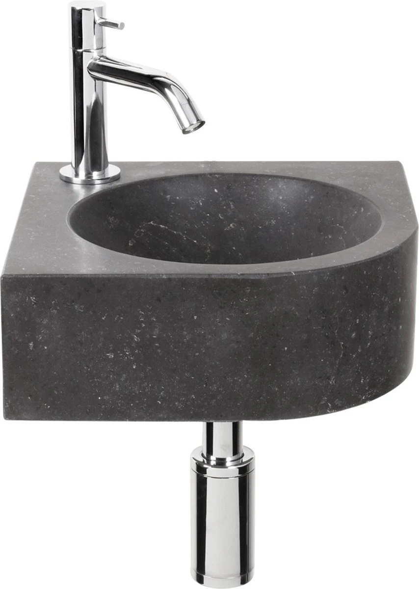Deze moderne fonteinset is geschikt voor een hoek in vrijwel iedere toiletruimte. De fonteinset is vervaardigt uit hoogwaardig natuursteen en wordt geleverd inclusief koudwaterkraan, afvoerplug en sifon. De bevestigingspunten bevinden zich uit het zicht van de gebruiker.