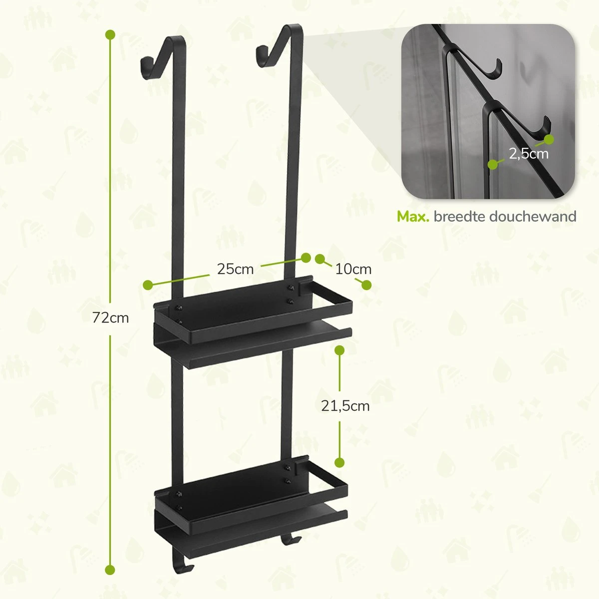 Het hangend doucherek is voorzien van 2-lagen voor al jouw douchespullen. Berg shampoo, douchegel, conditioner, scheerschuim en mesjes netjes op. Altijd binnen handbereik!