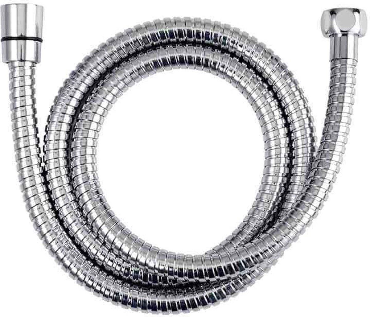 Universele doucheslang met anti-knik in chroom 100 cm tot 125cm, aansluiting ½” binnendraad en M15 buitendraad. Levering inclusief afdichtingsrubbers.