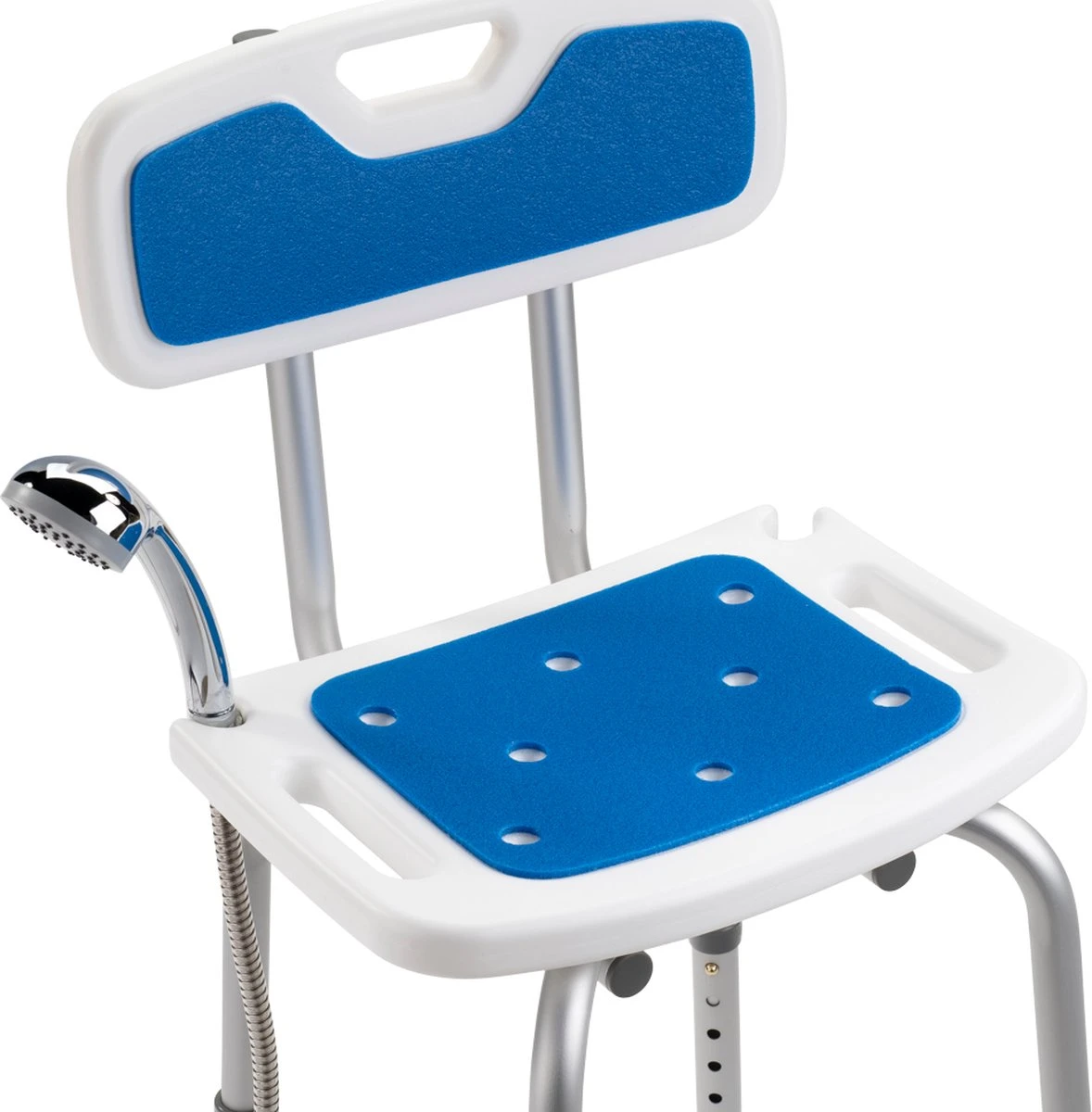 De zitting en rugleuning zijn voorzien van een comfortabele blauwe antislip bekleding wat ervoor zorgt dat u stabiel zit en niet van de zitting afglijdt. Ook zorgt de antislip bekleding er voor dat de douchestoel comfortabel zit.