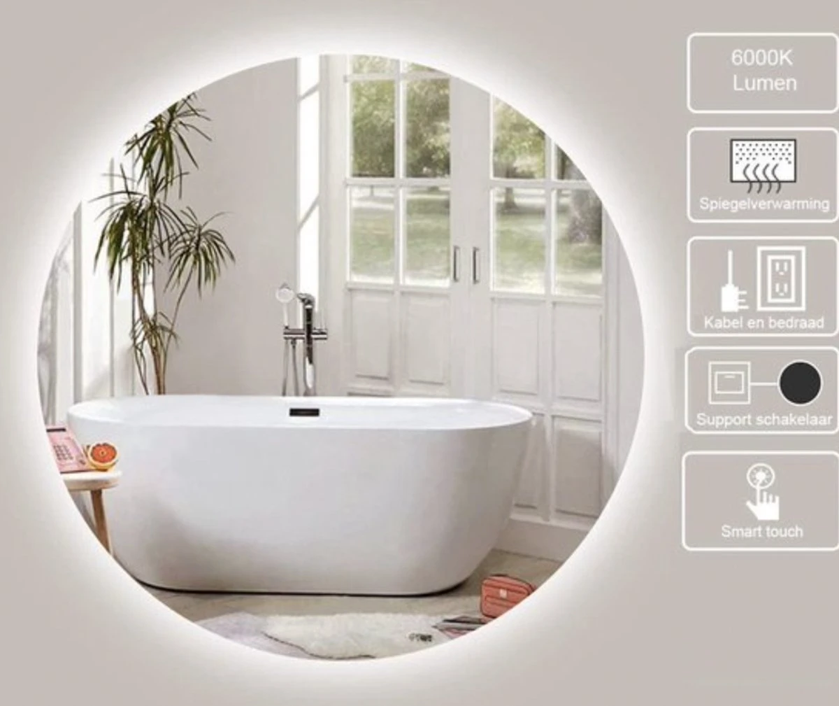 De ronde spiegels zijn helemaal hip! Deze spiegel van het luxe merk FENOMÉ is voorzien van backlight verlichting rondom. Dit houdt in dat de ledstrip achter de spiegel verwerkt is. De verlichting straalt niet direct naar voren in uw gezicht, maar richting de achtermuur. De lichtopbrengst is dusdanig goed, dat u er veel profijt van heeft en tegelijkertijd geen hinder van ondervindt omdat het niet in uw gezicht schijnt.