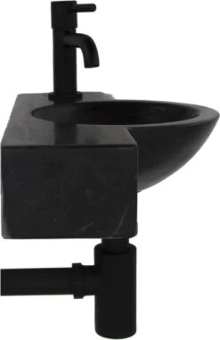 Bij het afwerken van jouw toilet mag een bron niet ontbreken. Die voeg ik graag zo volledig mogelijk toe en dat kan met dit font van L’Aqua. Deze set bestaat uit een natuurstenen fontein, een kraan met 1 hendel om de kraan te bedienen en een sifon. De hele set komt in dezelfde kleur, mat zwart. Hiermee creëer je een mooi ensemble in je badkamer en combineer je de fonteinset gemakkelijk met de andere producten zoals een wandkast of een spiegel.Het fonteintje heeft een afmeting van 40x23x8 cm.