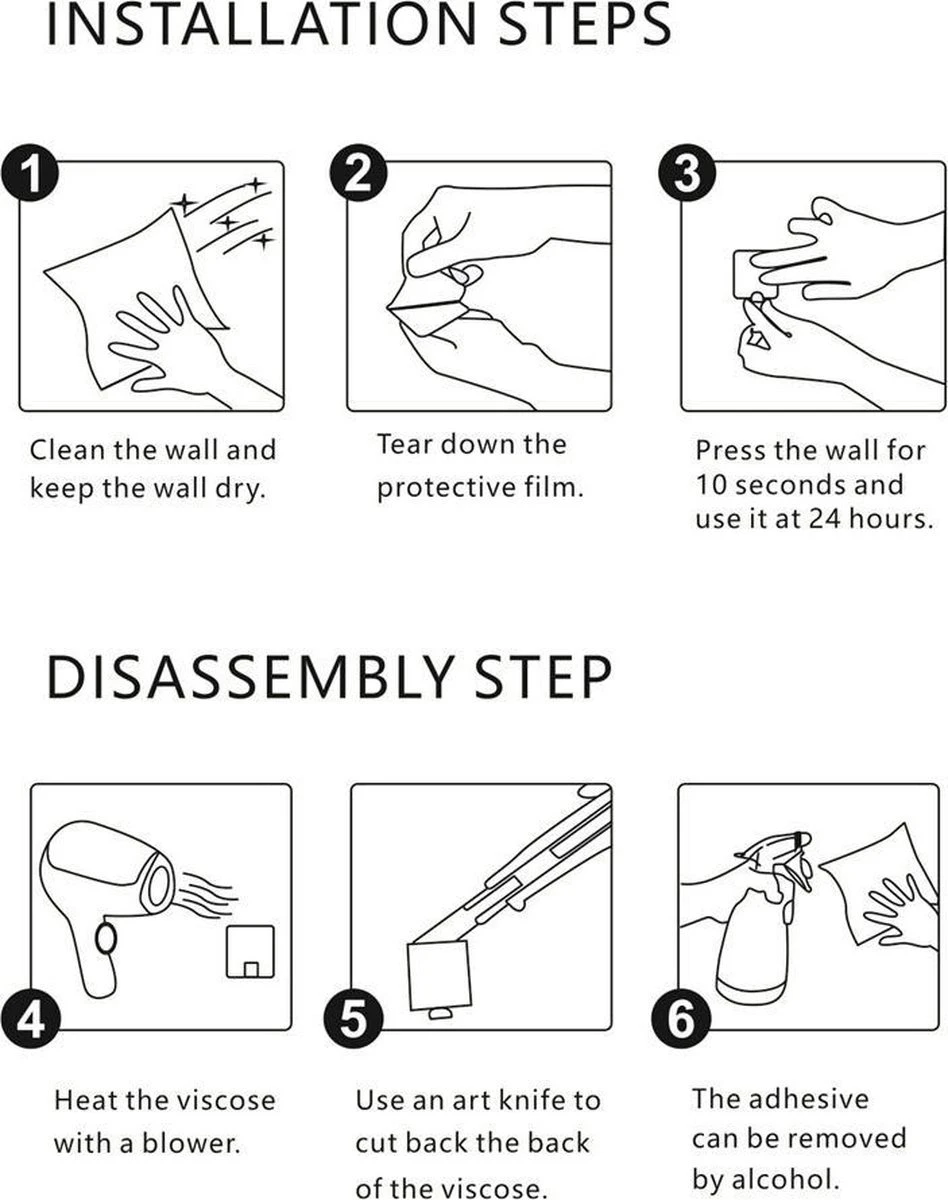 – De mogelijkheid om de haak vast te schroeven of met een plakstrip vast te zetten
