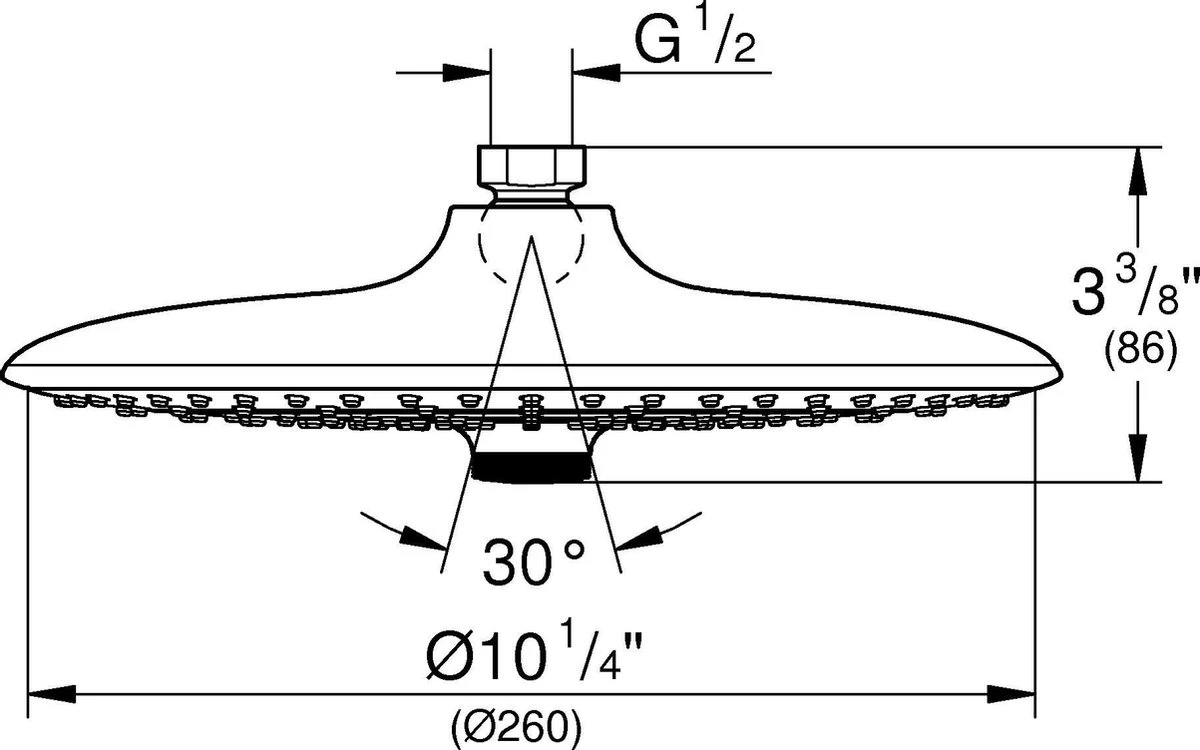 Grohe Euphoria SmartControl douchekop, chroom, diameter 260mm, (hxbxd) 86x260x86mm, rond, max. tapcapaciteit (bij 300 kPa) 7l/min, plafondmontage, instelbare sproeihoek, instelbare sproeistraal, 3 straalsoorten, antikalksysteem, maat draadaansluiting (inch) 1/2, binnendraad