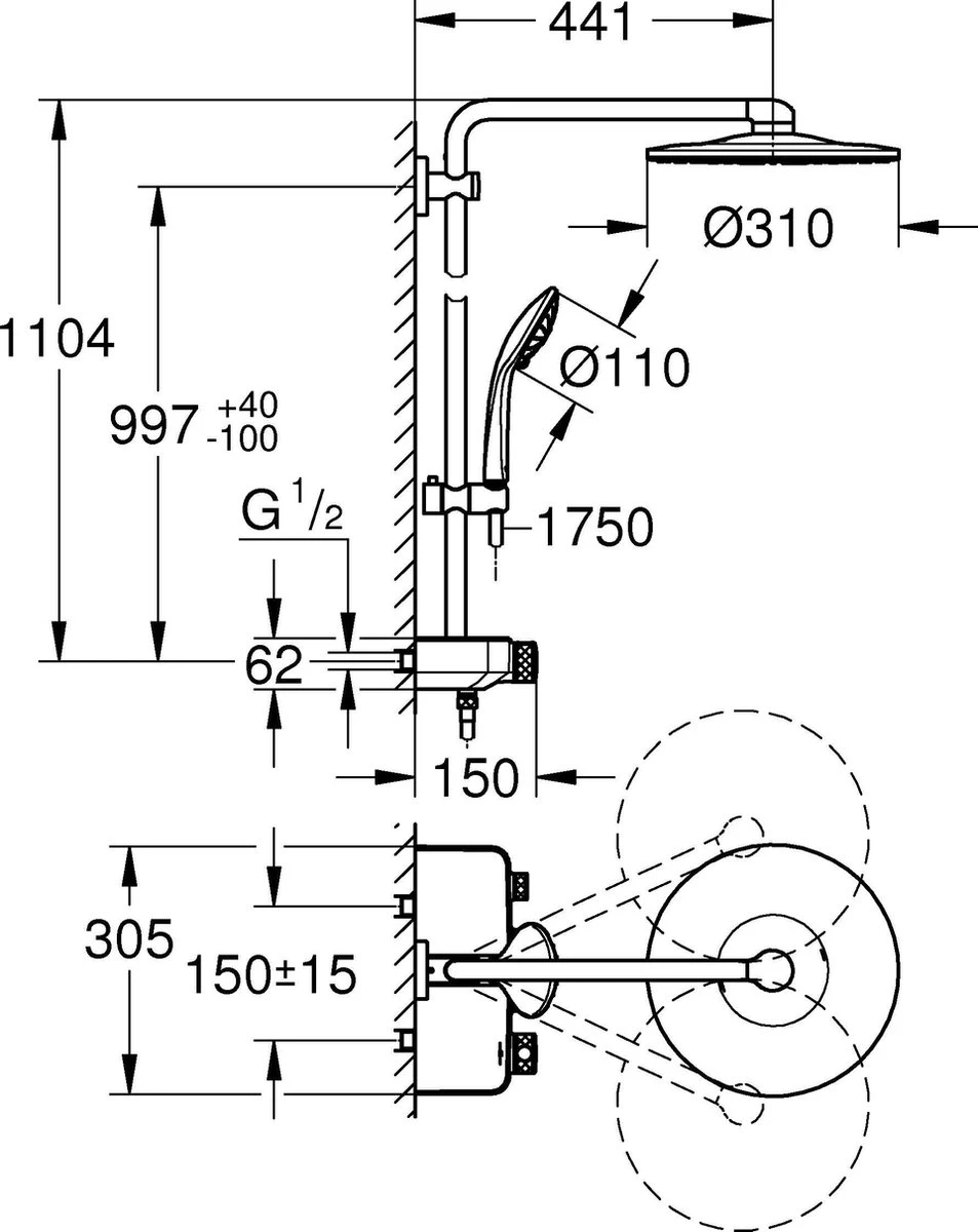 - Diameter hoofddouche: ø 31 cm
