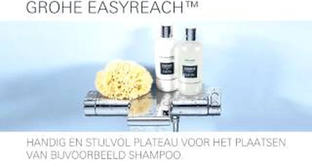De GROHE EasyReach™ tray is optioneel en past op de koppelingen van de bad- en douchethermostaat. Zo krijg je ruimte voor het plaatsen van bijvoorbeeld shampoo en douchschuim. En omdat de tray in een handomdraai verwijderd- en terug geplaatst kan worden is schoonmaken een fluitje van een cent.