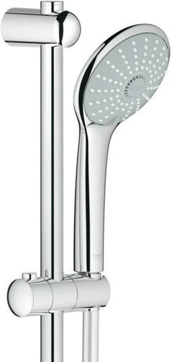 En deze set bevat zelfs nog meer handige functies: je kunt de 600 mm douchestang snel en probleemloos bevestigen omdat je dankzij ons GROHE QuickFix systeem bestaande boorgaten kunt gebruiken voor de bovenste beugel. Een meedraaiende doucheslang is verleden tijd met onze Twistfree 1750 mm doucheslang. Door het SpeedClean antikalksysteem en de duurzame GROHE SpeedClean chroomlaag heb je deze set zo gereinigd en verliest het nooit de schitterende glans. Bovendien heb je met de GROHE EasyReach zeepschaal jouw douchegel en shampoo binnen handbereik.