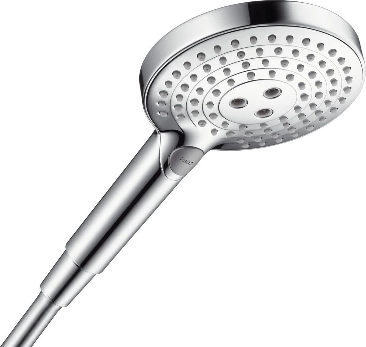 Met de Raindance Select S 120 douchekop van hansgrohe worden modern design en afwisselend doucheplezier gecombineerd. De handdouche met een diameter van 12,5 cm verwent met drie op elkaar afgestemde straalsoorten. De RainAir-straal zorgt voor het originele regendouchegevoel van hansgrohe. Hier wordt water verrijkt met lucht (AirPower). Dat zorgt voor vollere en zijdezachte druppels die de volledige warmte van het water aan de huid afgeven en minder spatten. De weldadige Rain-straal, ideaal om shampoo uit te spoelen, en de Whirl-straal om vastzittende spieren los te maken. wisselen van straalsoort kan heel eenvoudig met één druk op de knop (Select).