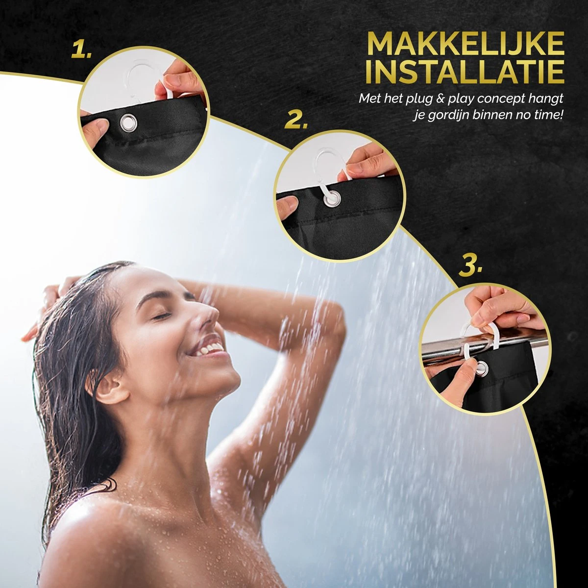 Doordat het douchegordijn wordt geleverd met 8 gordijnringen, is het gordijn geschikt voor zowel een bad en een douche. Het enige dat daarvoor aanwezig dient te zijn is een stang, waaraan de ringen bevestigd kunnen worden. Vervolgens zal jij vanwege het zeer eenvoudige bevestigingssysteem het gordijn in no time kunnen ophangen. Simpeler kan haast niet!