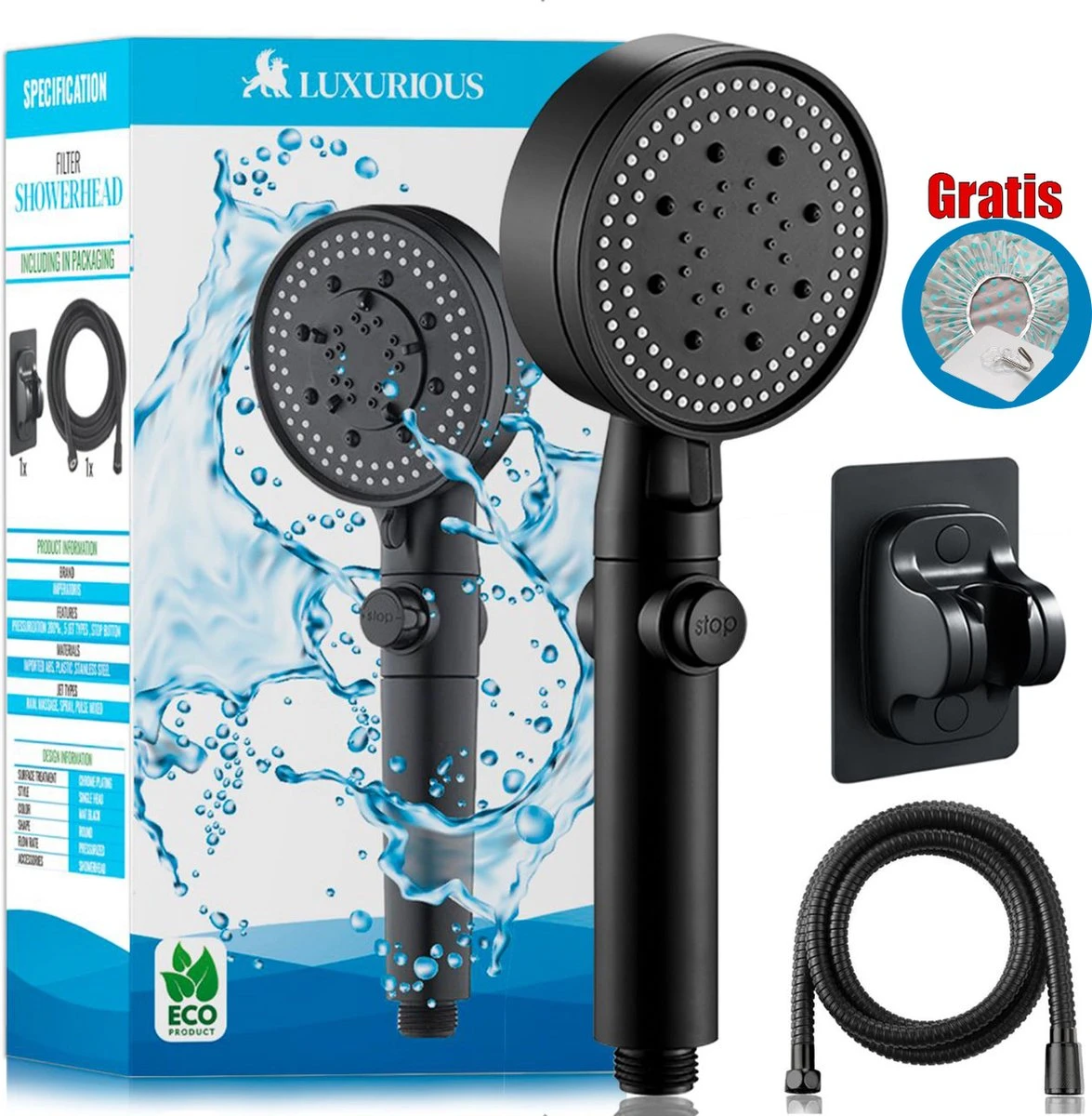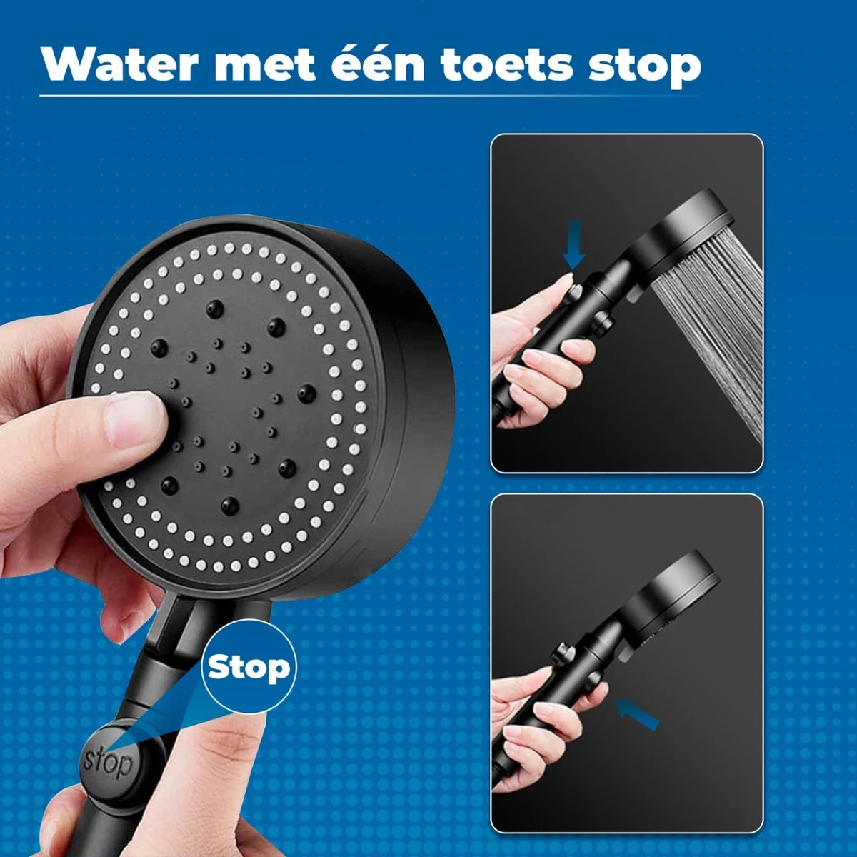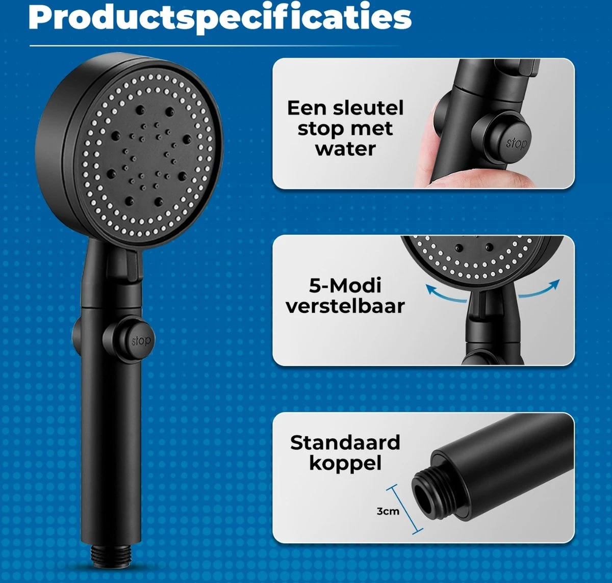 De Imperatoris Zwart Matte Douchekop Set word geleverd met doucheslang, houder en is dagelijks te gebruiken. Door middel van de regendouche waterbesparend douchekop bespaart u voortaan tot 35% aan water tijdens een douchebeurt. Na verloop van tijd zul je dit zeker merken in je portemonnee. Bovendien is de douchekop niet alleen waterbesparend, maar wordt de water met hoge druk en is heeft het ook nog eens een luxe uitstraling!