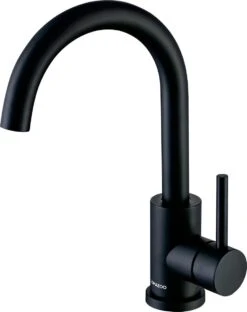Deze zwarte wastafelkraan is 27 cm hoog. De uitloop is 20 cm hoog.