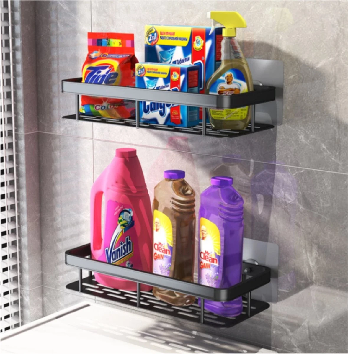 Het doucherekje is zwart van kleur en bestaat uit kunststof. Het rekje zal dus in veel badkamers mooi staan. Ook zitten er gaatjes in het wandrekje waardoor hij niet vol zal lopen met water.