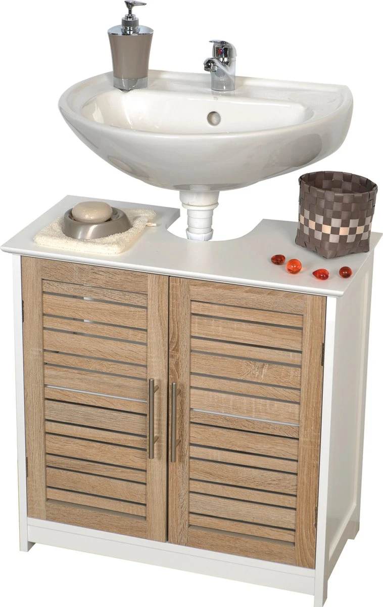 Eenvoudige maar elegante wastafel onderkast: deze badkamerkast heeft een mooie frisse uitstraling met zijn witte MDF body. De wastafelonderkast is geschikt voor de meeste wastafels door de uitsparing voor de sifon. Hij heeft door de slim gekozen afmetingen een zee van opbergmogelijkheden en past toch in de meeste compacte badkamers.