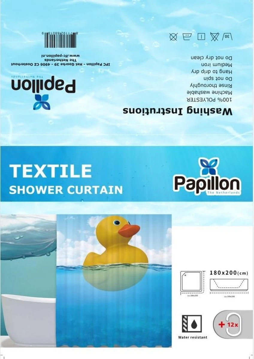 Douchen met een badeend? Met dit mooie douchegordijn van hoogwaardig textiel is dat heel goed mogelijk. Het gordijn heeft namelijk een enorm mooie fotoprint van een grote badeend. Verder heeft het douchegordijn een heldere blauwe kleur, waarmee je de badkamer weer een frisse uitstraling geeft.