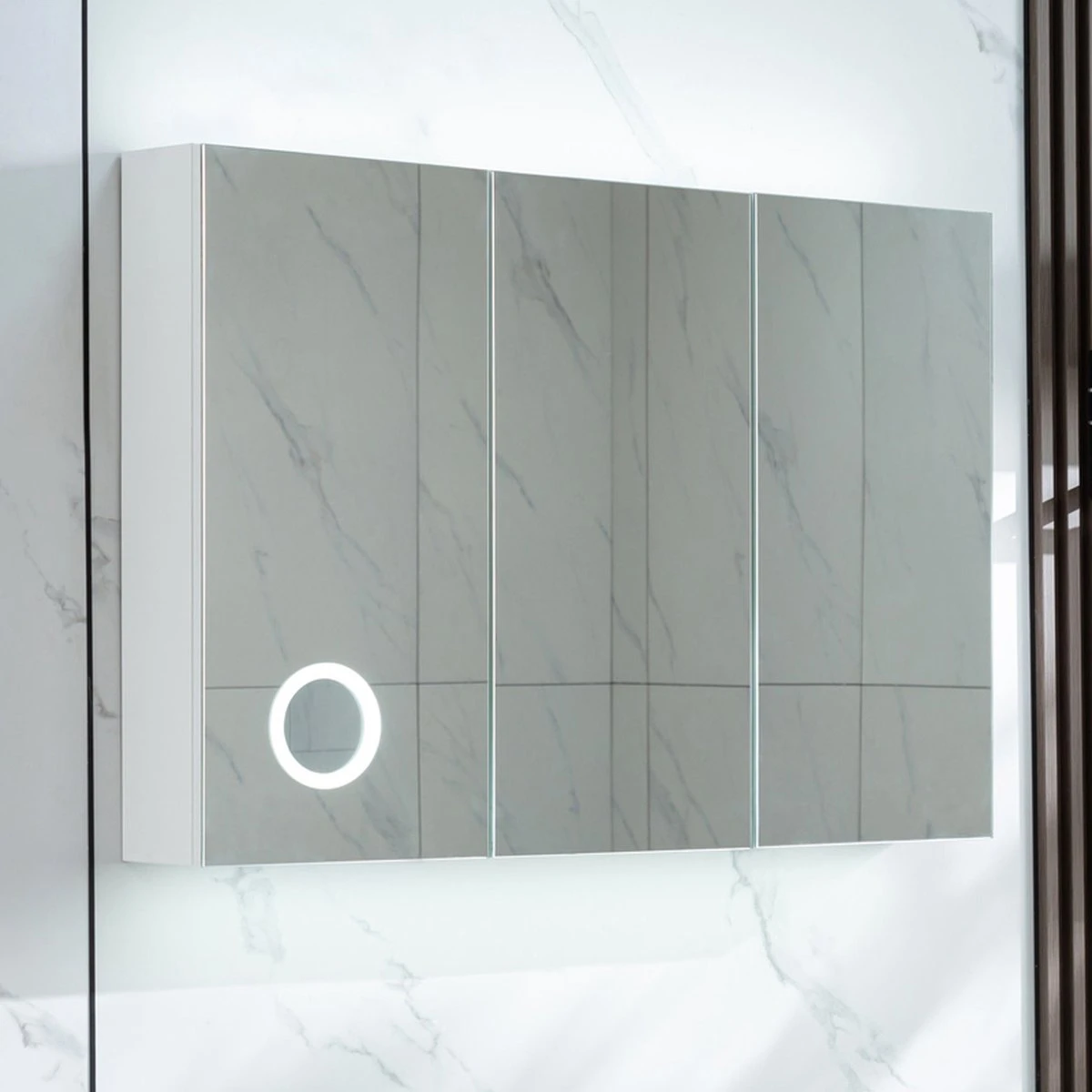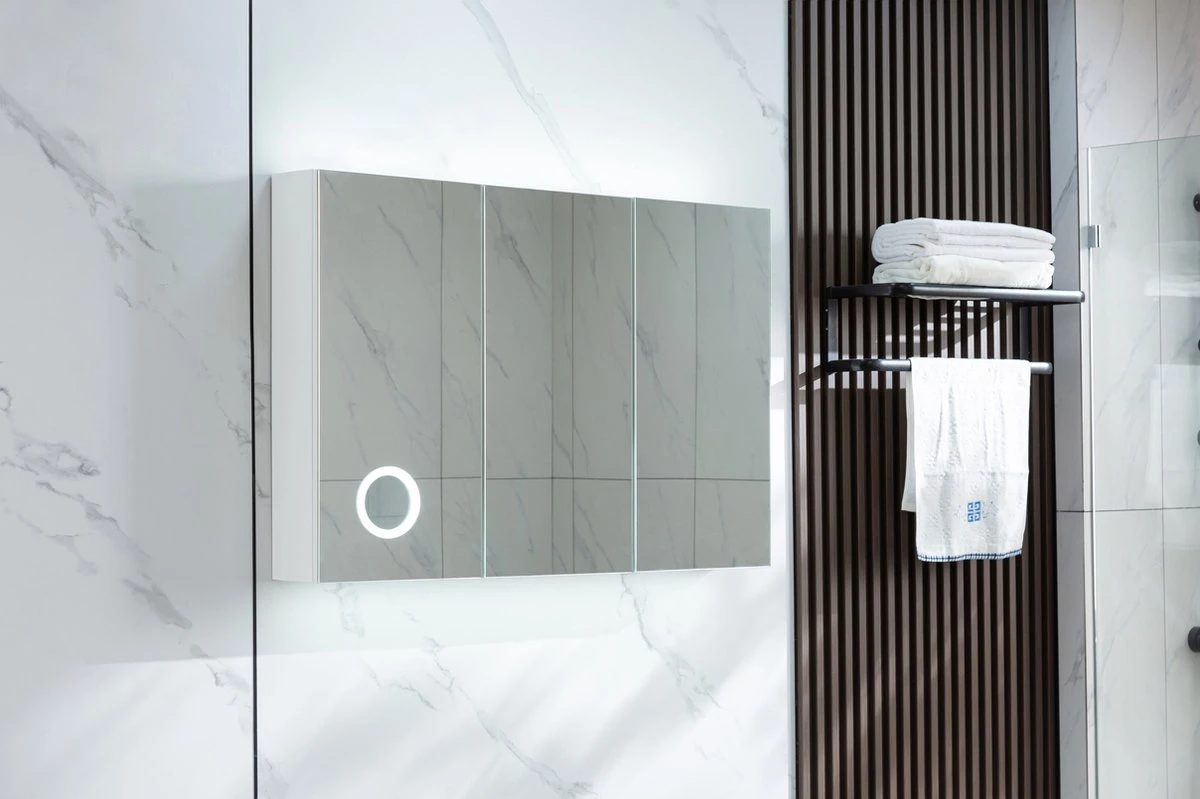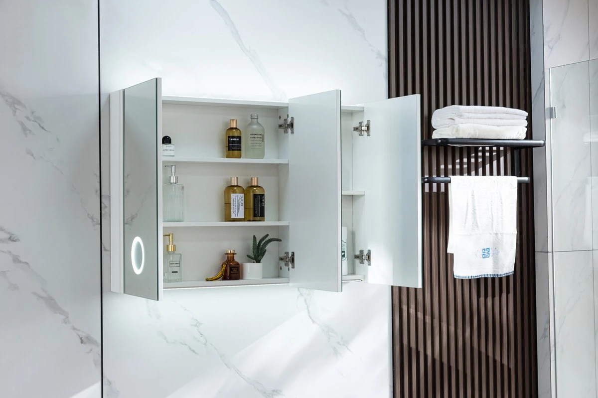 Spiegelkast met 3 deuren, led verlichting, vergrootglas 100 (b) x 70 cm (h) 15 cm diep
