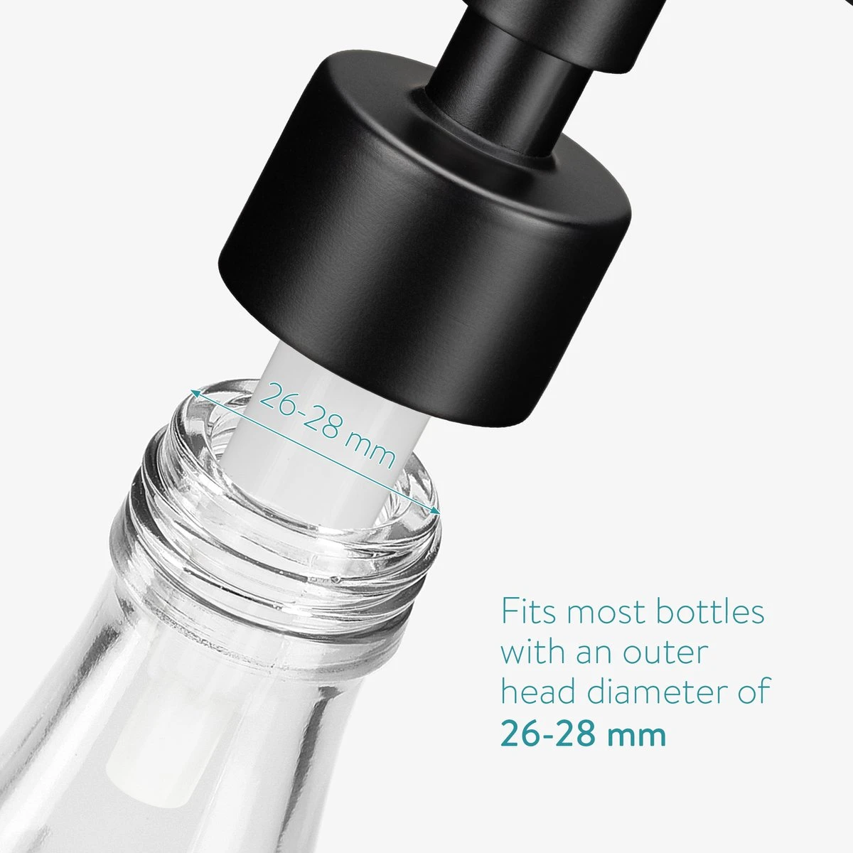- VEELZIJDIG: De pomp heeft een lang buisje van 20 cm dat met een schaar op de gewenste lengte kan worden geknipt. Zo kan de roestvrijstalen pompdispenser gemakkelijk worden aangepast voor allerlei flessen, van lang en slank tot kort en stevig.