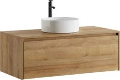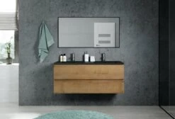 Badkamermeubel Angela 120cm Eiken – Badmeubel Met Zwarte Wastafel