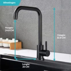 Croom Keukenkraan – Zwart – Wastafelkraan – Inclusief Aansluitmateriaal – Zwarte Kraan