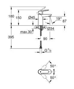 GROHE BauEdge Wastafelkraan – Met EcoJoy® – Zonder Waste – Chroom – 23330000