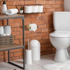 Relaxdays Toiletrolhouder Bamboe – Wc Rolhouder Zonder Boren – Closetrolhouder Muur Modern