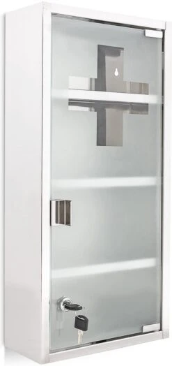 Relaxdays Medicijnkastje Afsluitbaar – Medicatiekastje – Badkamerkast Medicijnen – Wit