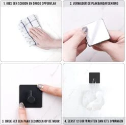 4x Zelfklevende Handdoekhaakjes Haakjes Ophanghaakjes Haken Zwart