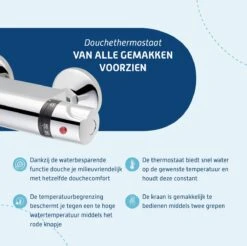 Saqu Ecoline – Thermostaatkraan – Waterbesparende Douchekraan – 15cm – Chroom