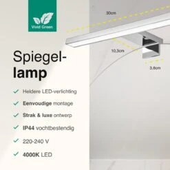 Vivid Green Spiegellamp Badkamer – Spiegelverlichting – Lamp – 30CM – IP44 – 4000K – Chroom