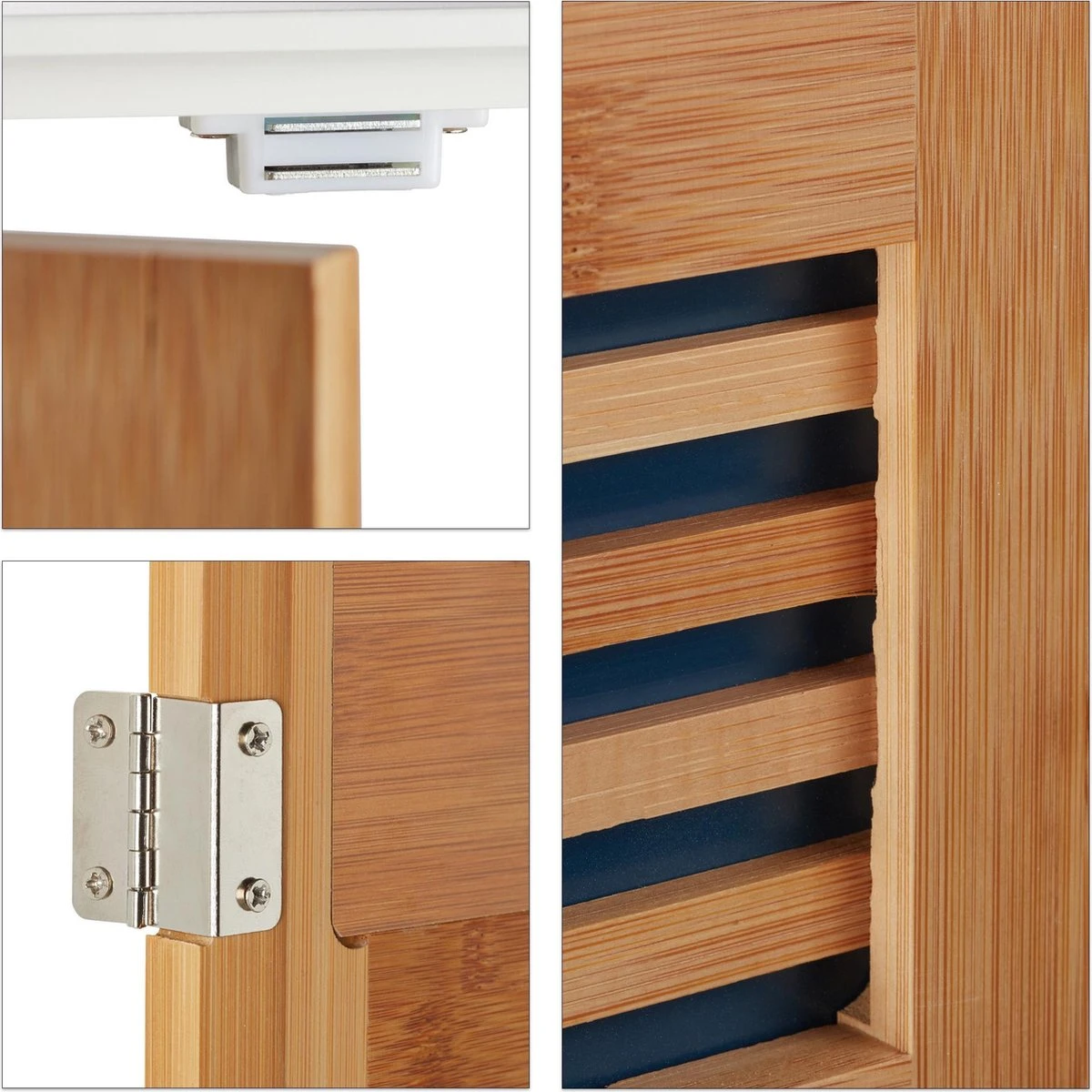 Je bent opzoek naar een mooie onderkast voor in de badkamer? Deze witte wastafelonderkast is precies wat je nodig hebt, om diverse voorwerpen op een elegante manier in de badkamer op te bergen. Het lamellen design van de bamboe deuren met natuurlijke houtnerf is een echte blikvanger. De magnetische sluiting voorkomt dat de deuren vanzelf open gaan. De sifon uitsparing maakt het mogelijk de badkamerkast onder alle wastafels te plaatsen. De planken kunnen op 3 verschillende hoogtes geplaatst worden.