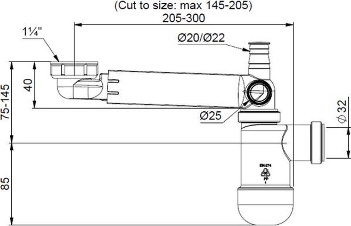 Dit ruimtebesparende telescopische sifon voor de wastafel heeft een 32mm aansluiting en is zowel in hoogte als in diepte te verstellen