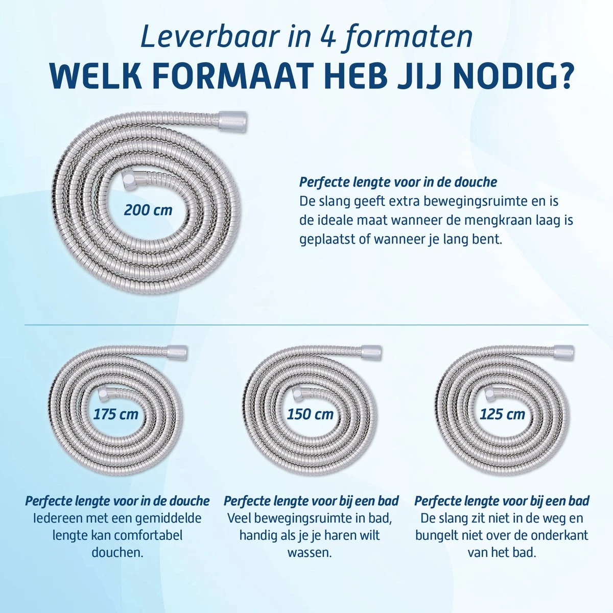 De Saqu doucheslang is ook verkrijgbaar in andere lengtes. Zo kun je de doucheslang aanschaffen in de lengtes 125 cm, 150 cm en 175 cm.