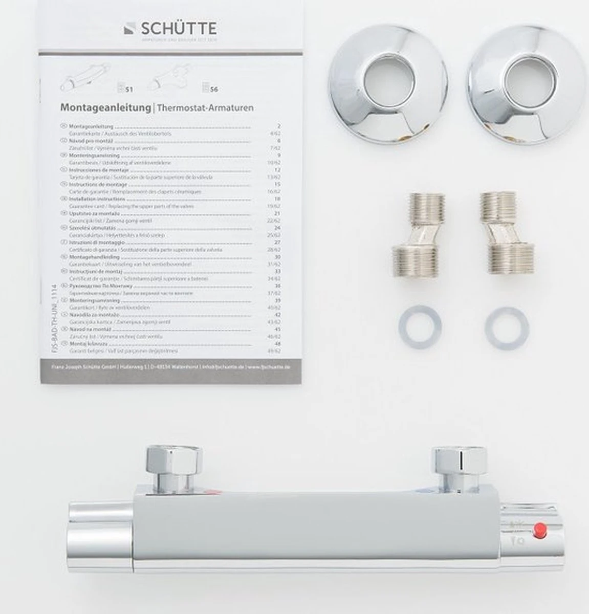 | Verpakkingsinhoud | Douchekraan, 2x s-koppelingen, pakkingen, 2x rozetten, montagehandleiding in diverse talen, o.a. Nederlands |