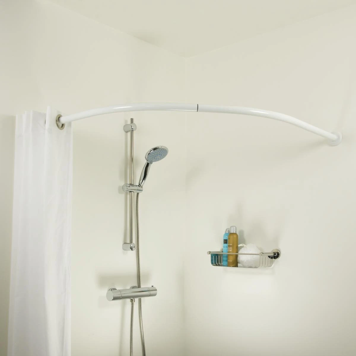 De Rondalux douchegordijnstang van Sealskin is dankzij zijn ronding de perfecte keuze voor het ophangen van een douchegordijn in de hoek van je badkamer. Deze douchegordijnstang heeft een doorsnede van 28 mm, is gemaakt van RVS en uitgevoerd in de kleur wit.