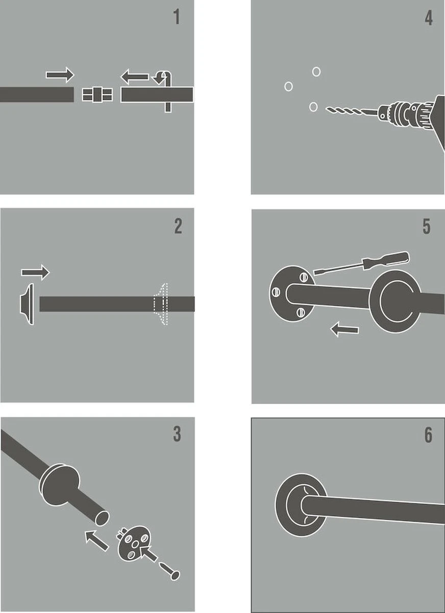 • Handig alles-in-één pakket voor het ophangen van een douchegordijn